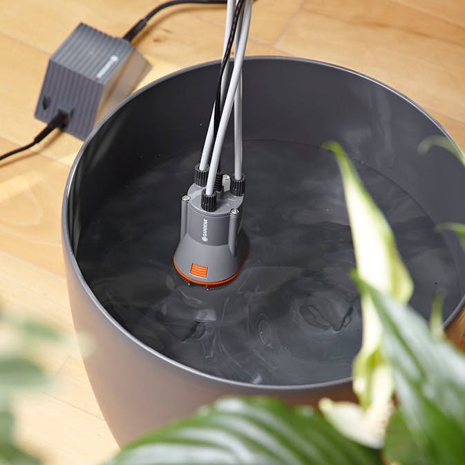 Med GARDENA Semesterbevattning kan upp till 36 krukväxter automatiskt bevattnas. Picture may differ from actual product there can be accessories and parts not supplied with the actual product. Du behöver bara en extra vattenhink.
