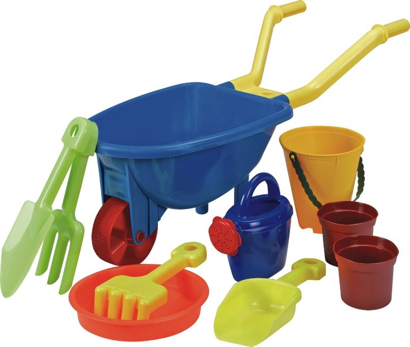 Early Learning Centre Wheelbarrow SetThis kids wheelbarrow set from the Early Learning Centre comes with plenty of extra gardening toy tools to keep them entertained. Includes trampolines swings and playhouses.